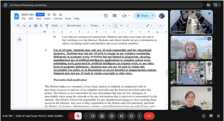 If you’re interested in creating a task force or policy guidance in your own district, we encourage you to make use of our “Montana Guidance + Policy” resources on our Basecamp page. If you’re a Montana school seeking support in the creation of a task force, or to have the Frontier Learning Lab team join a meeting, email us at ai.help@mtda.org.